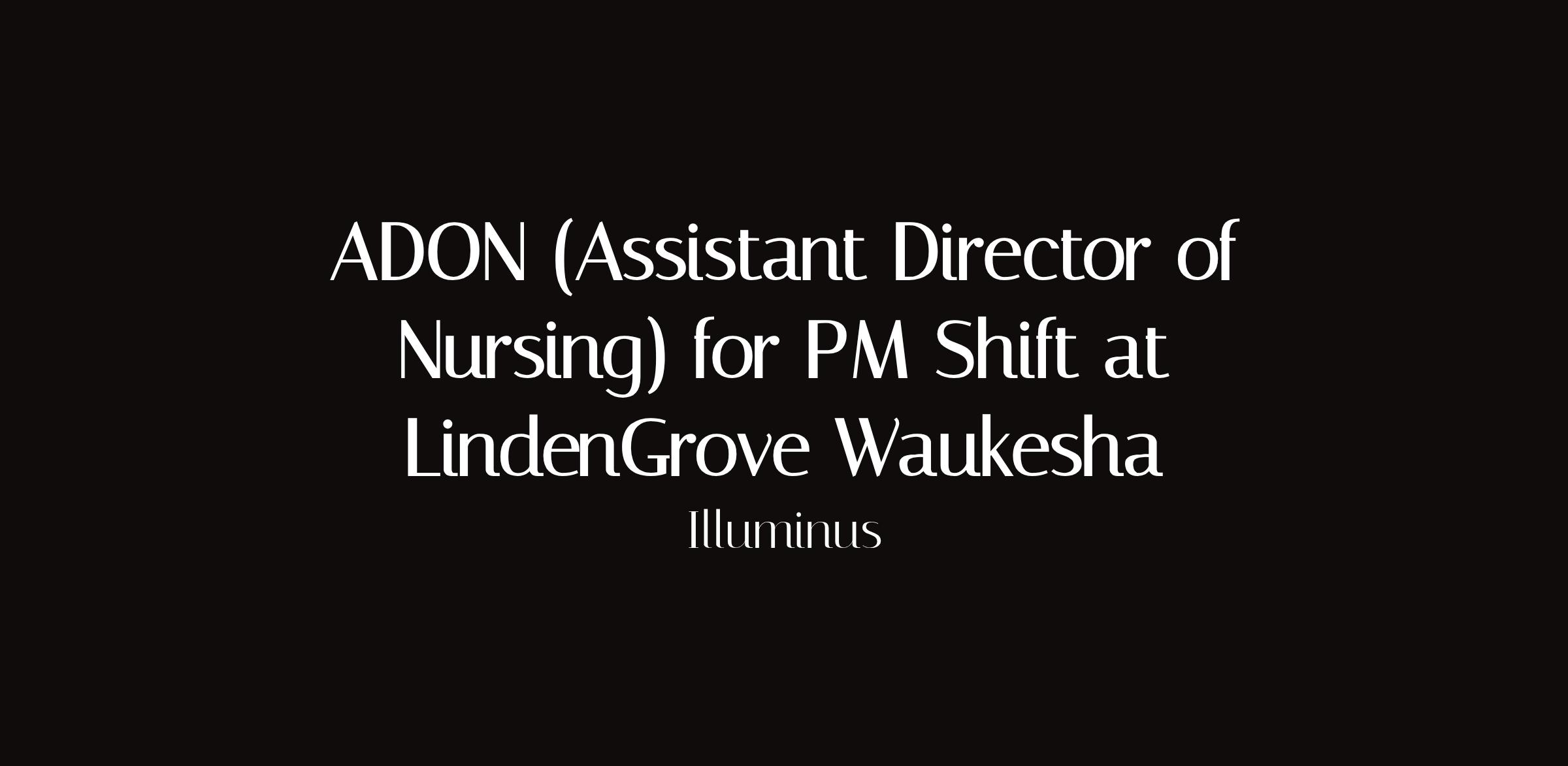 Full-time Description ADON (Assistant Director of Nursing) at LindenGrove Waukesha425 N. University Drive, Waukesha, WI 53188LindenGrove Waukesha, an Illuminus Community, is hiring an ADON (Assistant Director of Nursing). We offer assisted living, memory support, and short-term rehabilitation and long-term skilled care on a beautiful campus. We are passionate about offering holistic, transformative care and helping those in need rediscover their light within.The ADON must be a licensed Registere