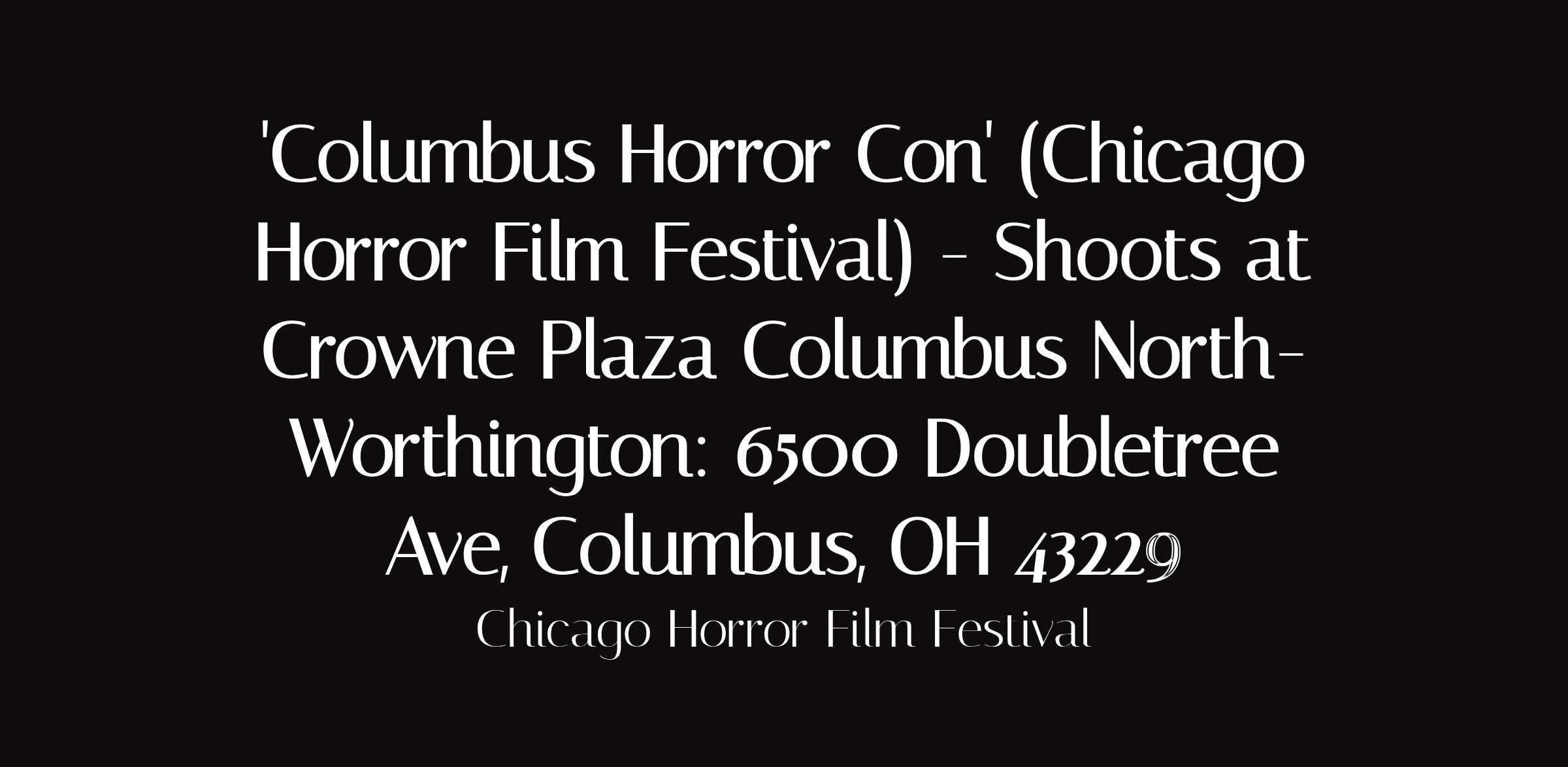 'Columbus Horror Con' (Chicago Horror Film Festival) - Shoots at Crowne Plaza Columbus North- Worthington: 6500 Doubletree Ave, Columbus, OH 43229