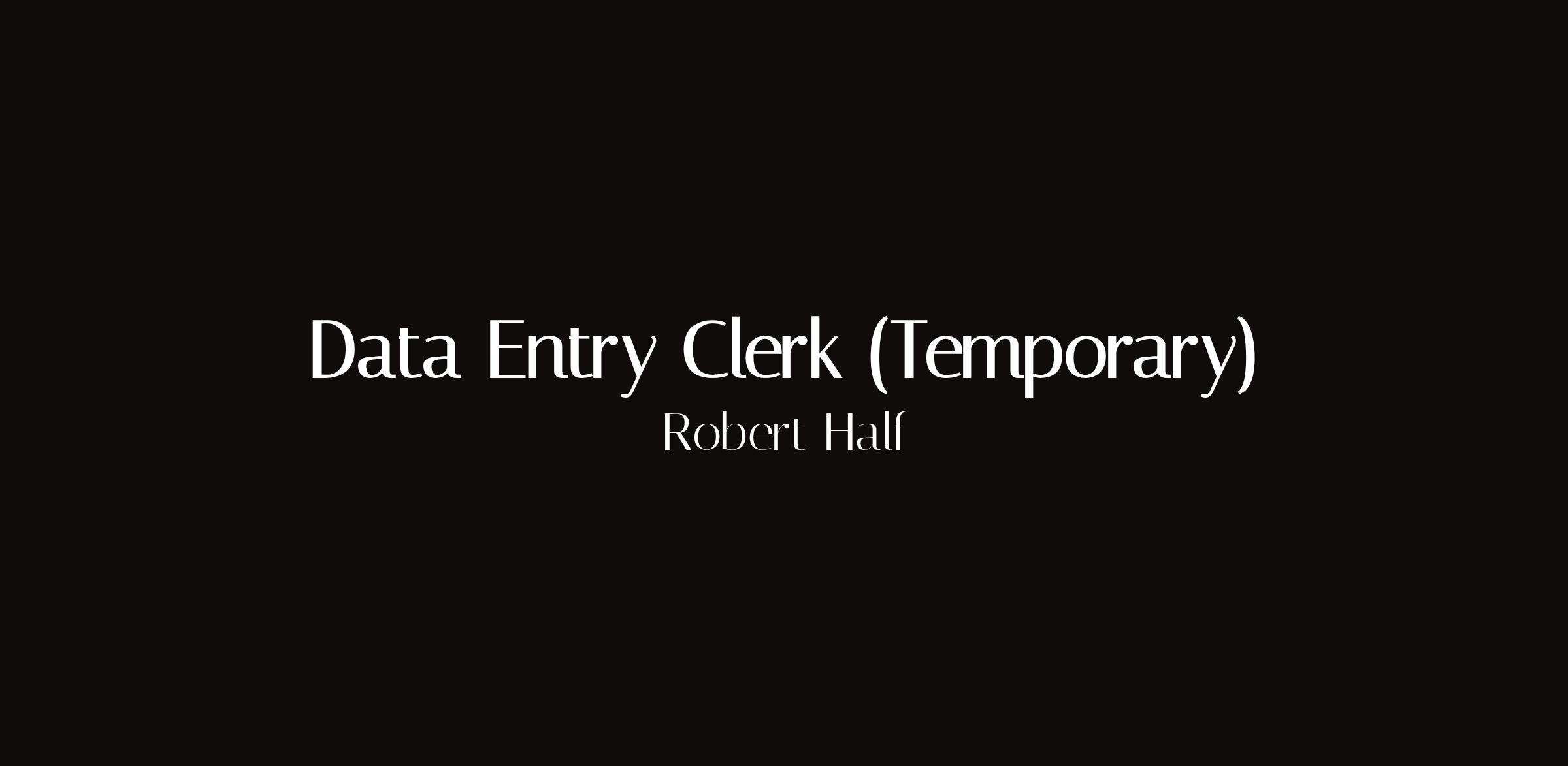 Data Entry Clerk — TemporaryLocation: Chicago, ILType: Temporary via staffing agencyTemporary data entry clerk position through Robert Half in Chicago. Document processing, database entry, and administrative support for corporate clients.