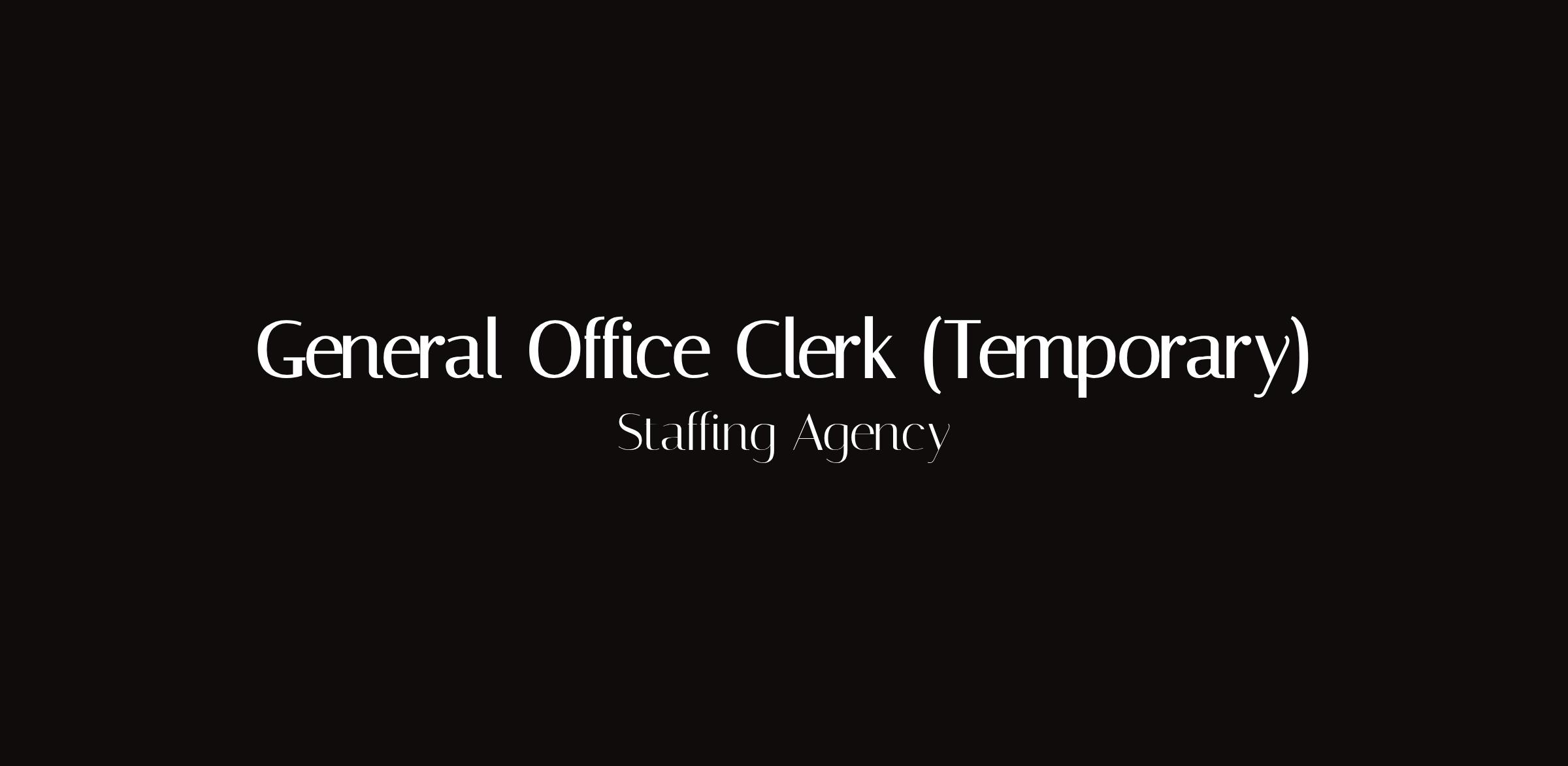 General Office Clerk — TemporaryLocation: Chicago, ILType: Temporary via staffing agencyTemporary general office clerk position in Chicago. Filing, data entry, phone coverage, and general administrative support.