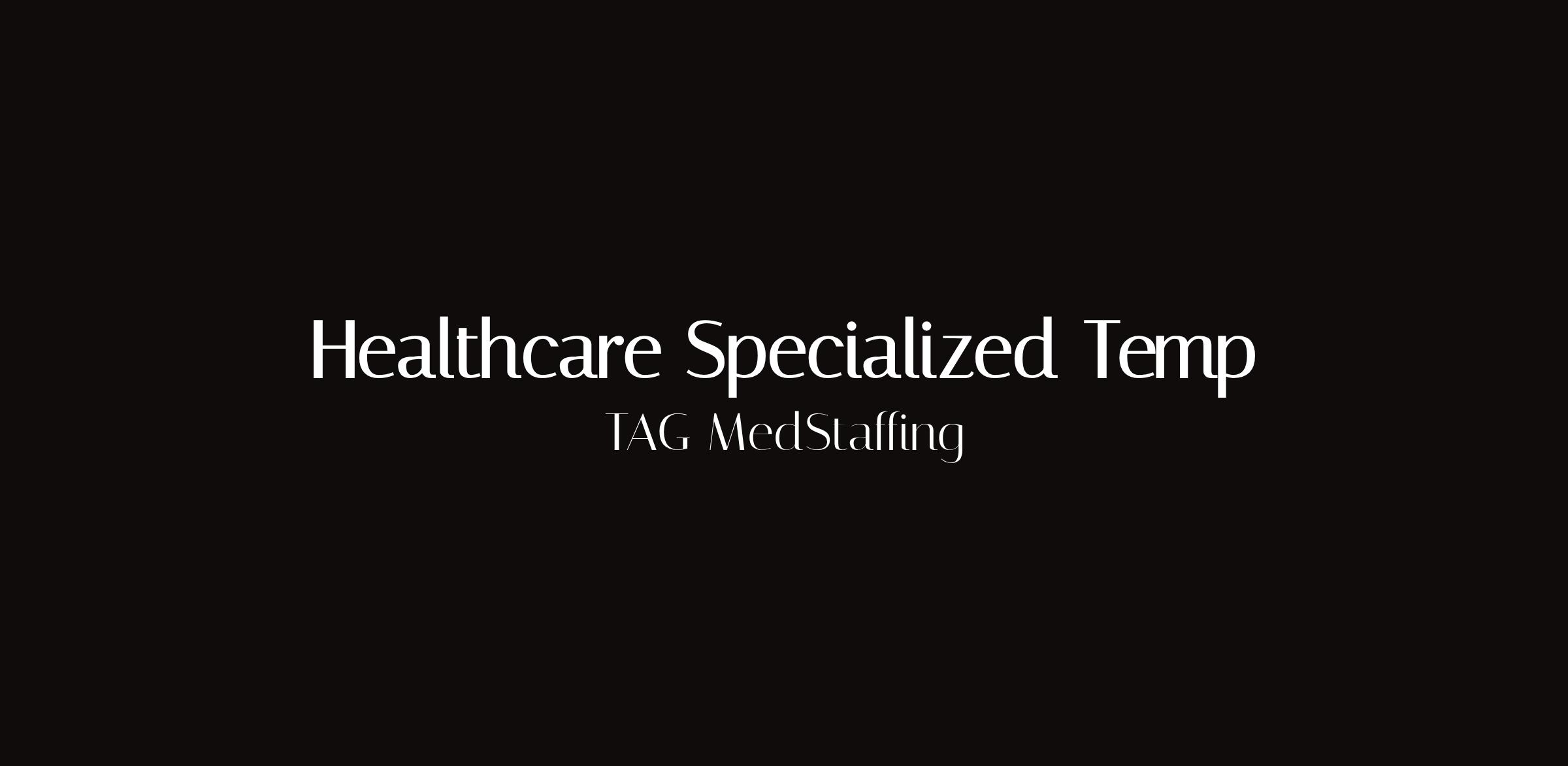 Healthcare Specialized TempLocation: Chicago, ILType: Specialized healthcare staffingSpecialized healthcare temporary positions through TAG MedStaffing in Chicago. Clinical and non-clinical healthcare assignments requiring specialized skills and certifications.