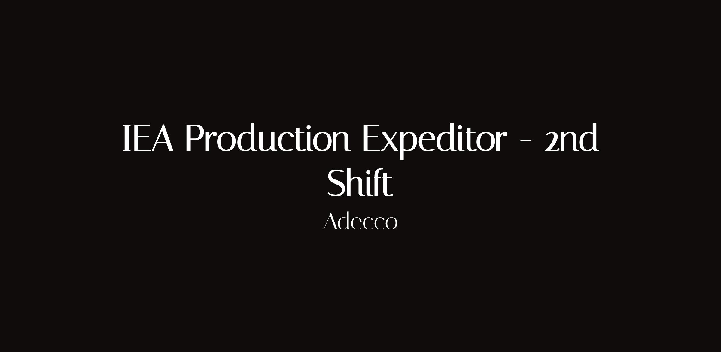IEA Production Expeditor - 2nd ShiftLocation: Kenosha WisconsinShift: 2nd Shift | Pay: $21.50/hourWe are seeking a reliable and detail-oriented Production Expeditor to support manufacturing operations by ensuring materials components and finished goods move efficiently throughout the facility.Responsibilities:Stage and deliver materials to production to prevent work stoppagesServe as the link between Materials and Production teamsOperate forklifts hoists and material-handling equipmentLoad and u