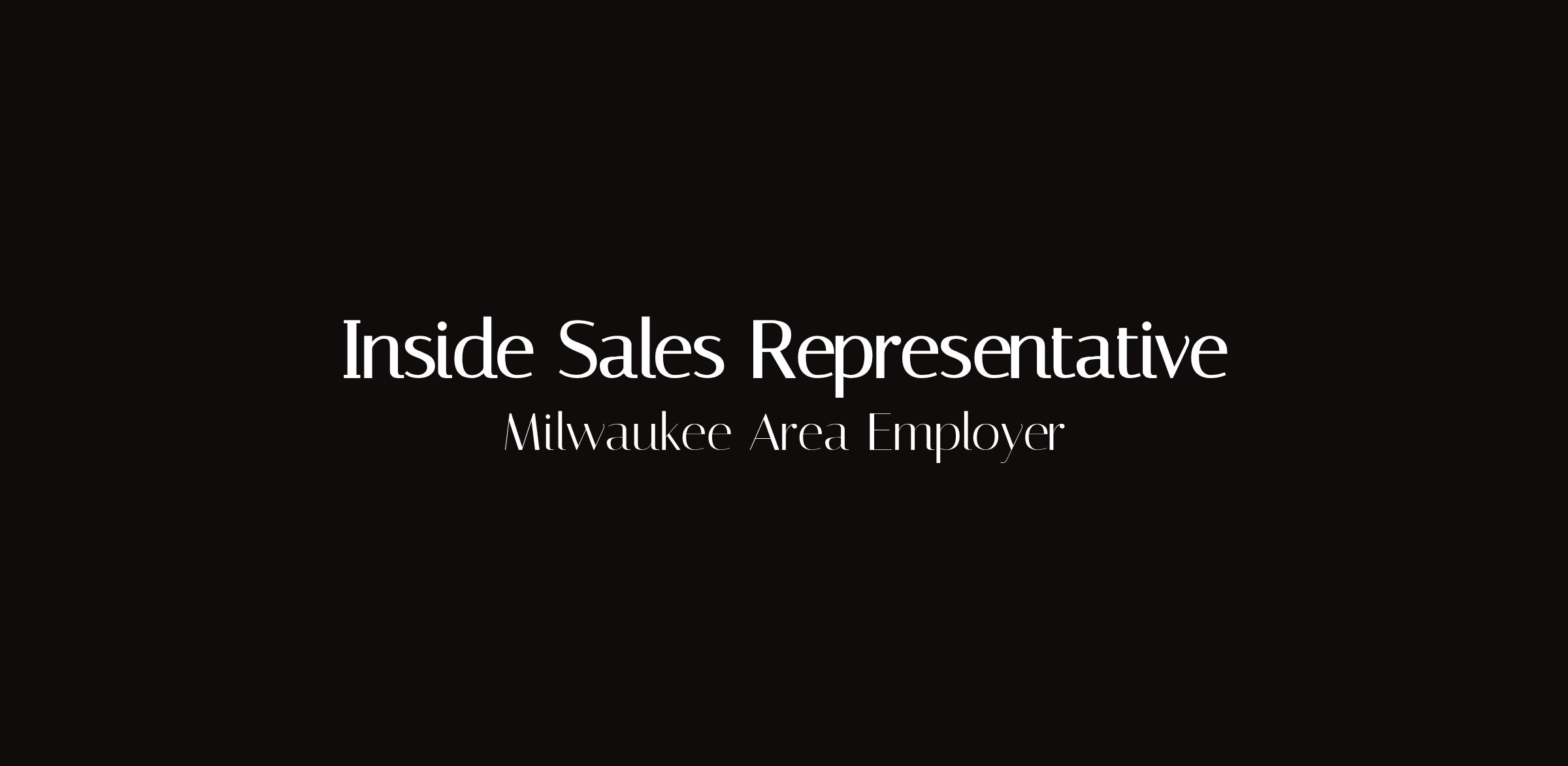 Inside Sales RepresentativeLocation: Milwaukee, WI areaType: Full-time, hiring immediatelyInside sales representative position in Milwaukee. Phone and email sales, lead qualification, customer relationship management, and revenue generation. Immediate hire.