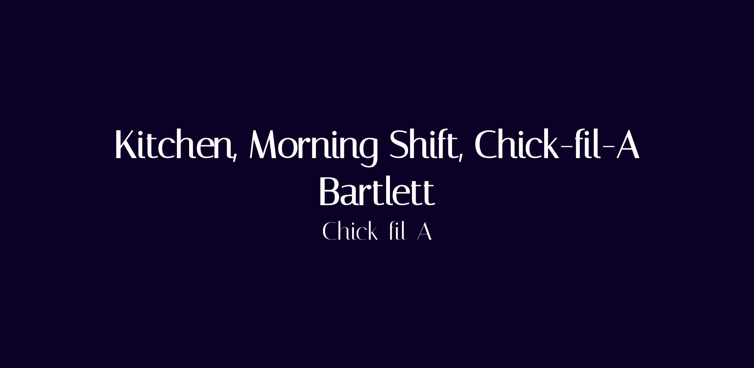 Description: Chick-fil-A of Bartlett is seeking hospitality professionals. At Chick-fil-A of Bartlett, the team member role is more than just a job, it's an opportunity to be a hospitality professional and earn a premium wage. In addition to working directly for an independent Operator, team members gain life experience that goes far beyond just serving a great product in a friendly environment. If you are looking for a great work environment with true career opportunities, then Chick-fil-A of Bartlett is the place for you. Chick-fil-A is a great opportunity for people of all ages and backgrounds, and no experience is necessary.