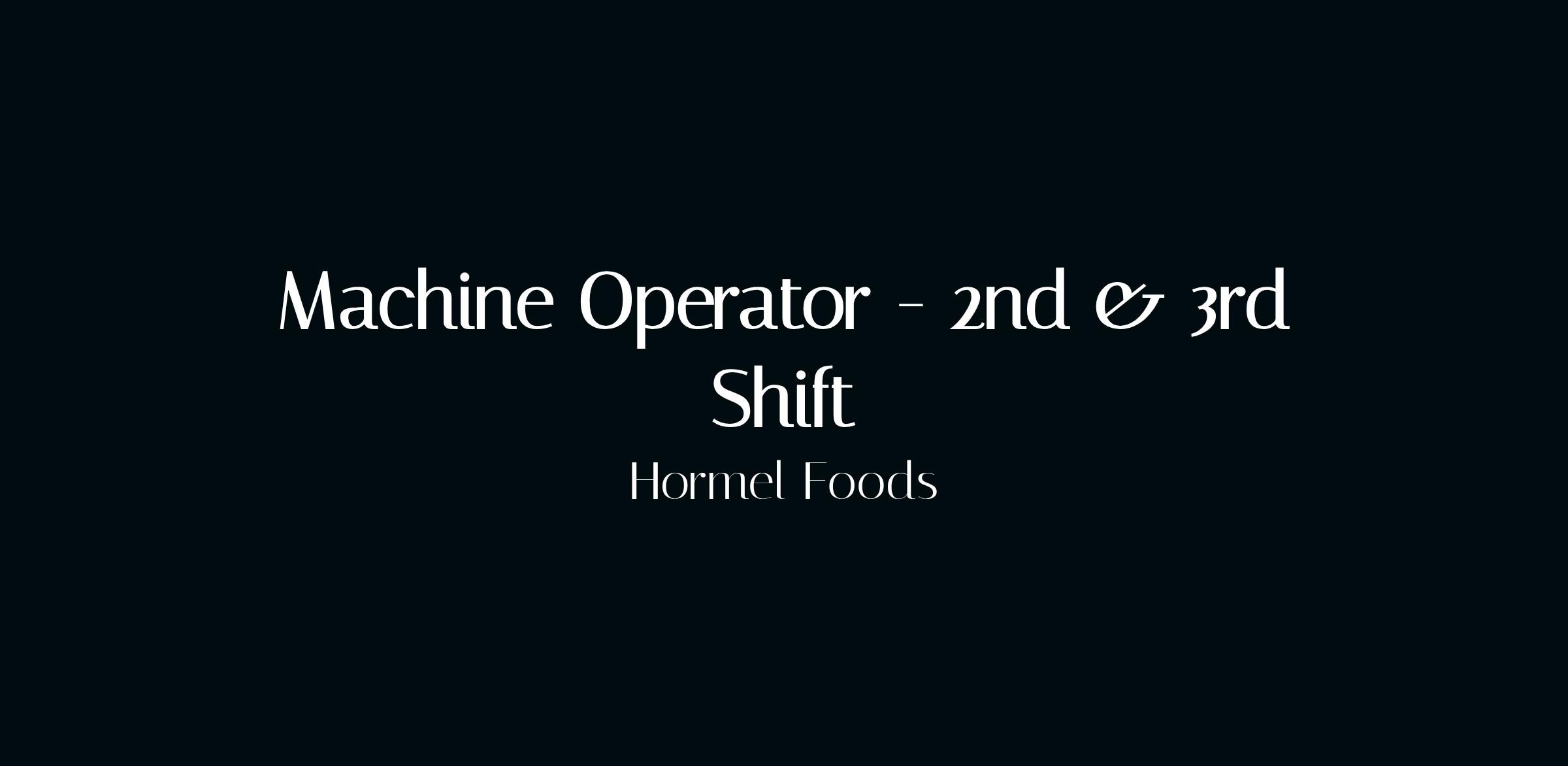Hormel Foods is hiring Machine Operators for our Beloit food processing facility. Join a leading food company with stable hours and growth opportunities.