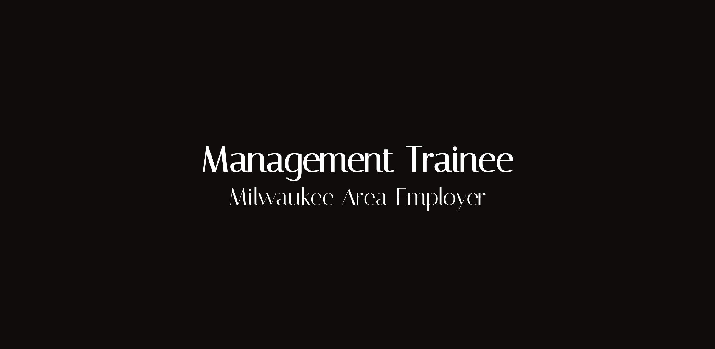 Management TraineeLocation: Milwaukee, WI areaType: Full-time, hiring immediatelyManagement trainee position in Milwaukee. Rotational training program developing leadership and operational management skills. Immediate hire category.