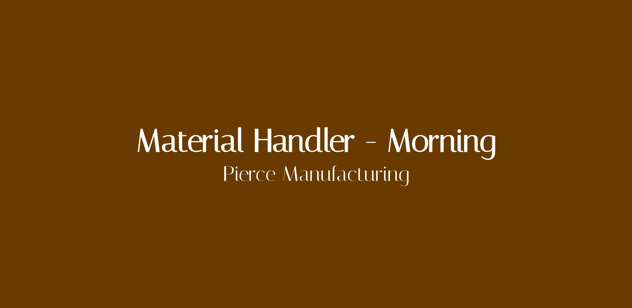 Why open: Material handler has a dentist appointment. Need coverage for the morning shift to keep parts flowing to the fire truck assembly line.