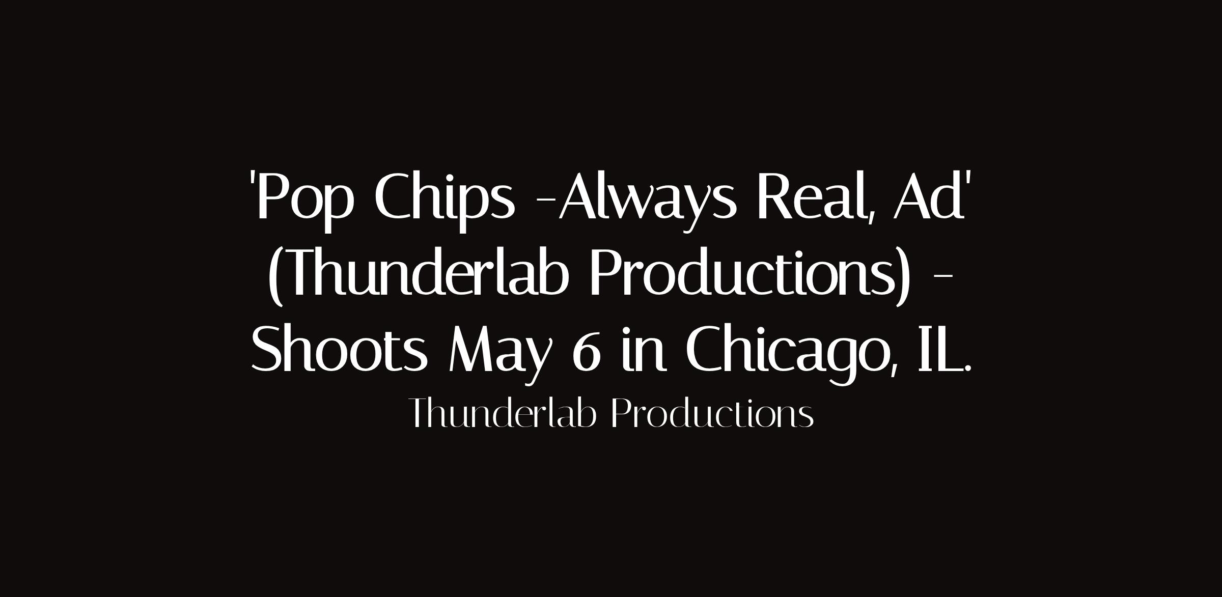 Branded Content / Commercial Online Commercial / Video Ad: Casting three Gen Z to millennial individuals with a strong, model-ready look. Production is aiming for a diverse range of talent across appearances.Production has attached reference images from previous Pop Chips castings to give a sense of the aesthetic the client selected in the past. Casting 1 role