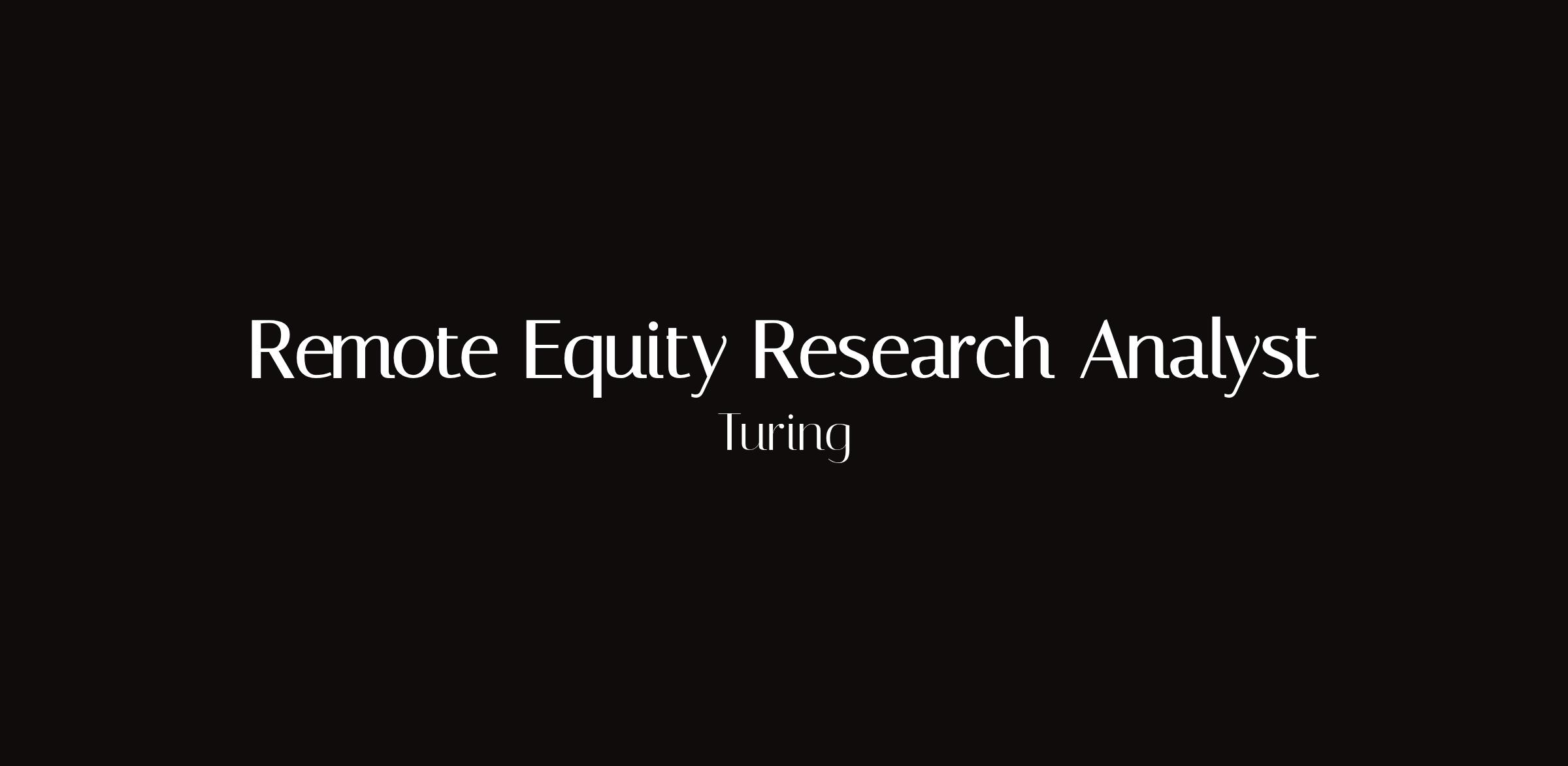 Remote Equity Research AnalystLocation: Remote (Chicago employer)Type: High-skill remote gigPay: $100.00/hourRemote equity research analyst position through Turing. High-skill remote gig accessible to workers regardless of geographic location. Financial analysis, market research, and equity valuation for tech/financial services clients.