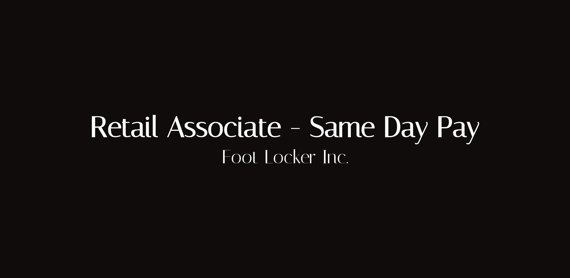 Retail Associate — Same Day PayLocation: Chicago, ILType: Same day pay / Daily Pay optionPay: $17.60/hourBenefits: Daily Pay/Weekly Pay options, 30–50% employee discountsSame-day pay retail position at Foot Locker in Chicago. Traditional retail employment framework with accelerated pay access rather than true gig arrangement. Note: no existing vacancies at this time; openings filled on expedited basis from existing candidate pool.