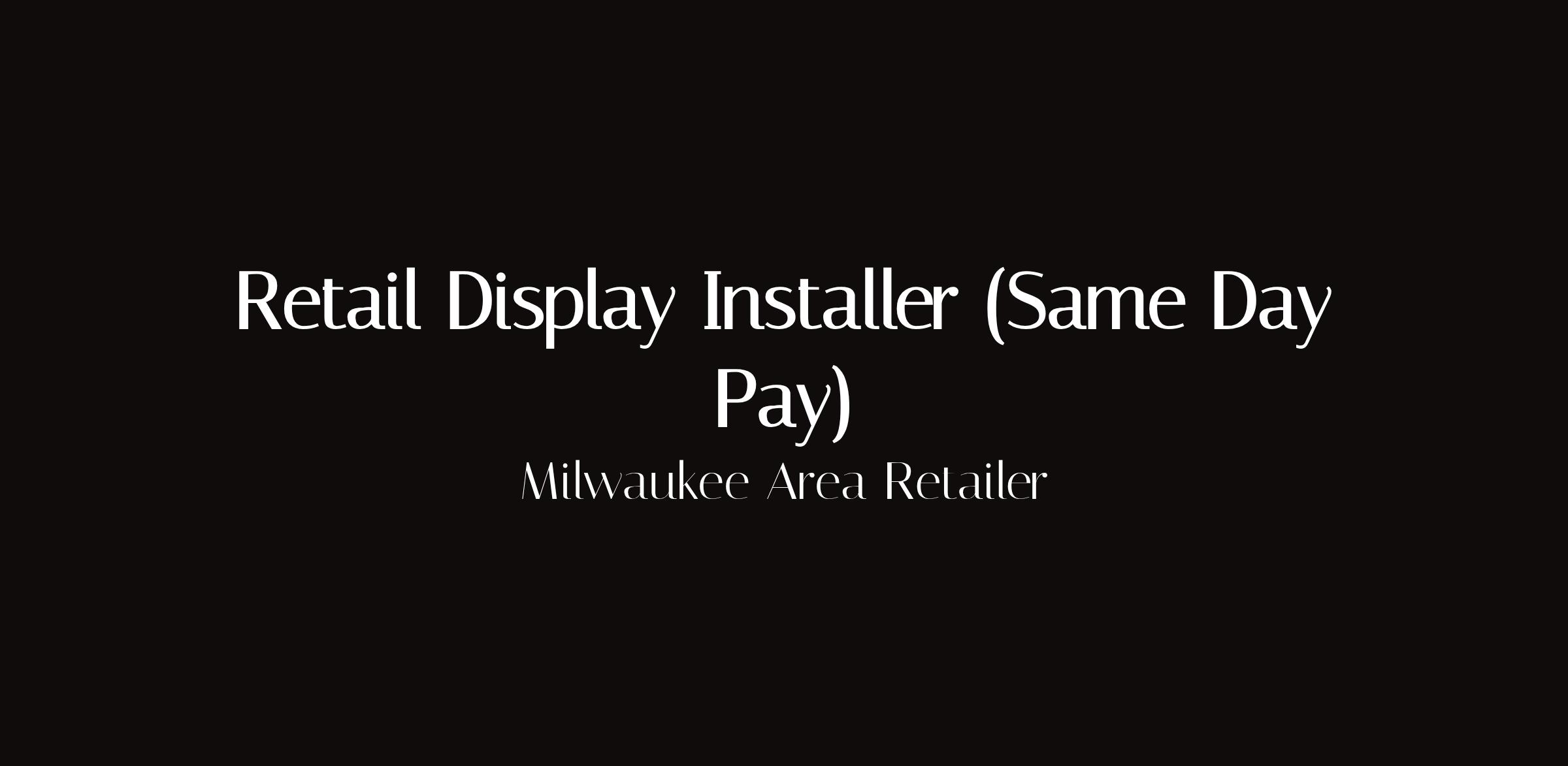 Retail Display Installer — Same Day PayLocation: Milwaukee, WI areaType: Same day payRetail display installer position with same-day pay in Milwaukee. Visual merchandising, display setup, and retail environment maintenance.