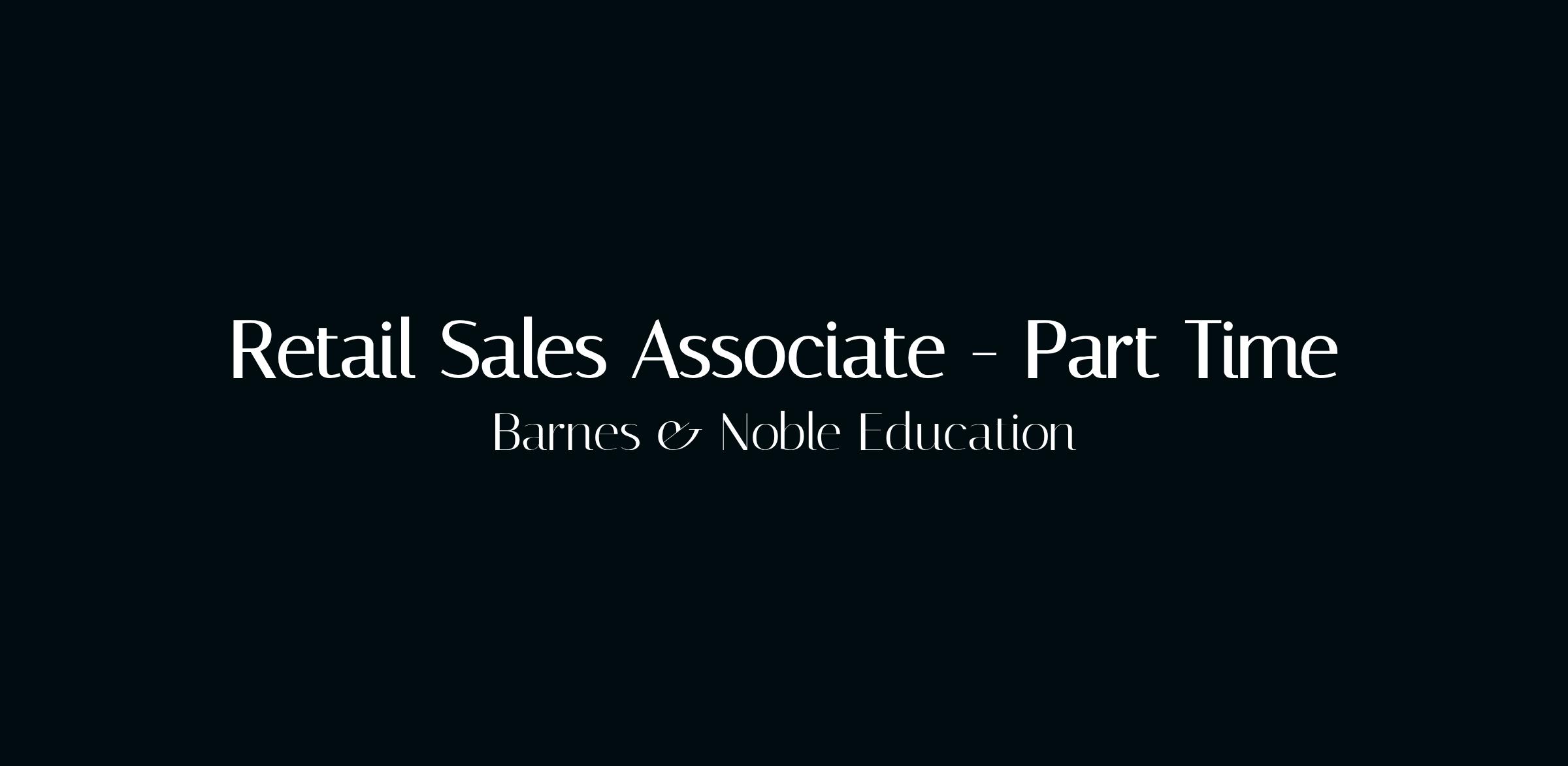 Barnes & Noble Education is hiring a part-time Retail Sales Associate for a campus bookstore location. This is a temporary position ideal for students or anyone seeking flexible retail hours.