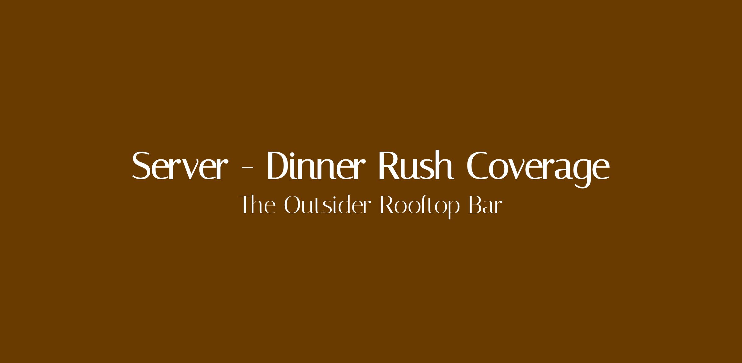 Why open: Regular server called in sick. Need one experienced server to cover a busy Thursday rooftop dinner service.