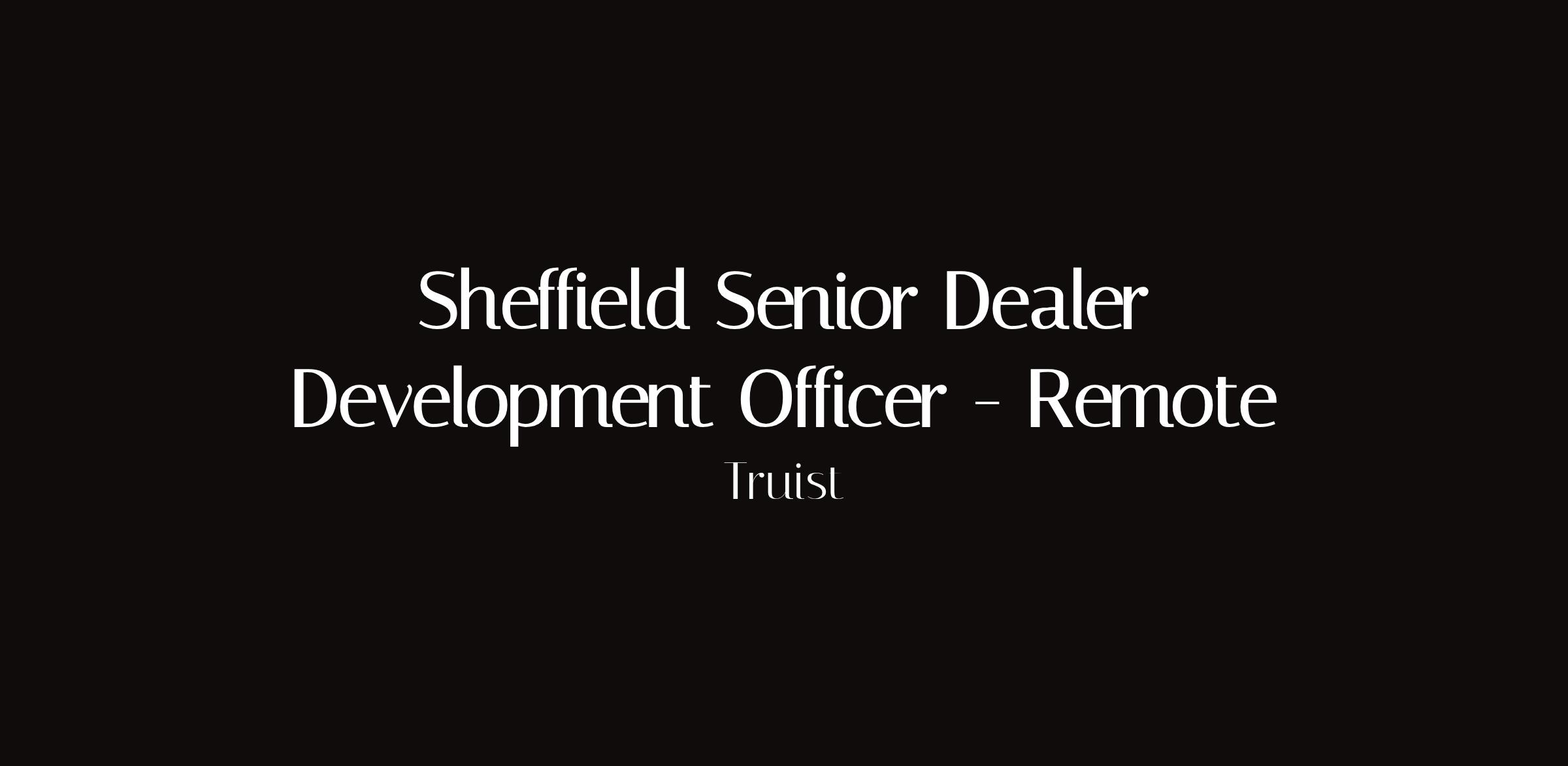 Sheffield Senior Dealer Development Officer — RemoteLocation: Remote (Milwaukee market listing)Type: Remote financial services gigSenior dealer development officer at Truist, listed in Milwaukee market with remote delivery. Financial services territory development in remote format. Traditional territory-based role converted to location-independent arrangement.