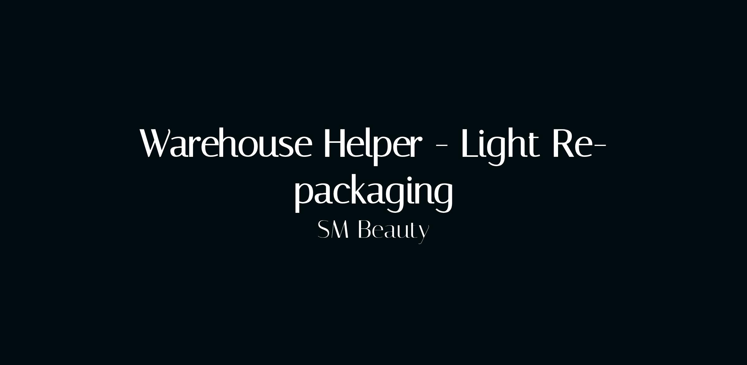 SM Beauty is seeking a Warehouse Helper for light re-packaging work. This is a simple, entry-level position perfect for anyone looking to pick up flexible warehouse shifts.