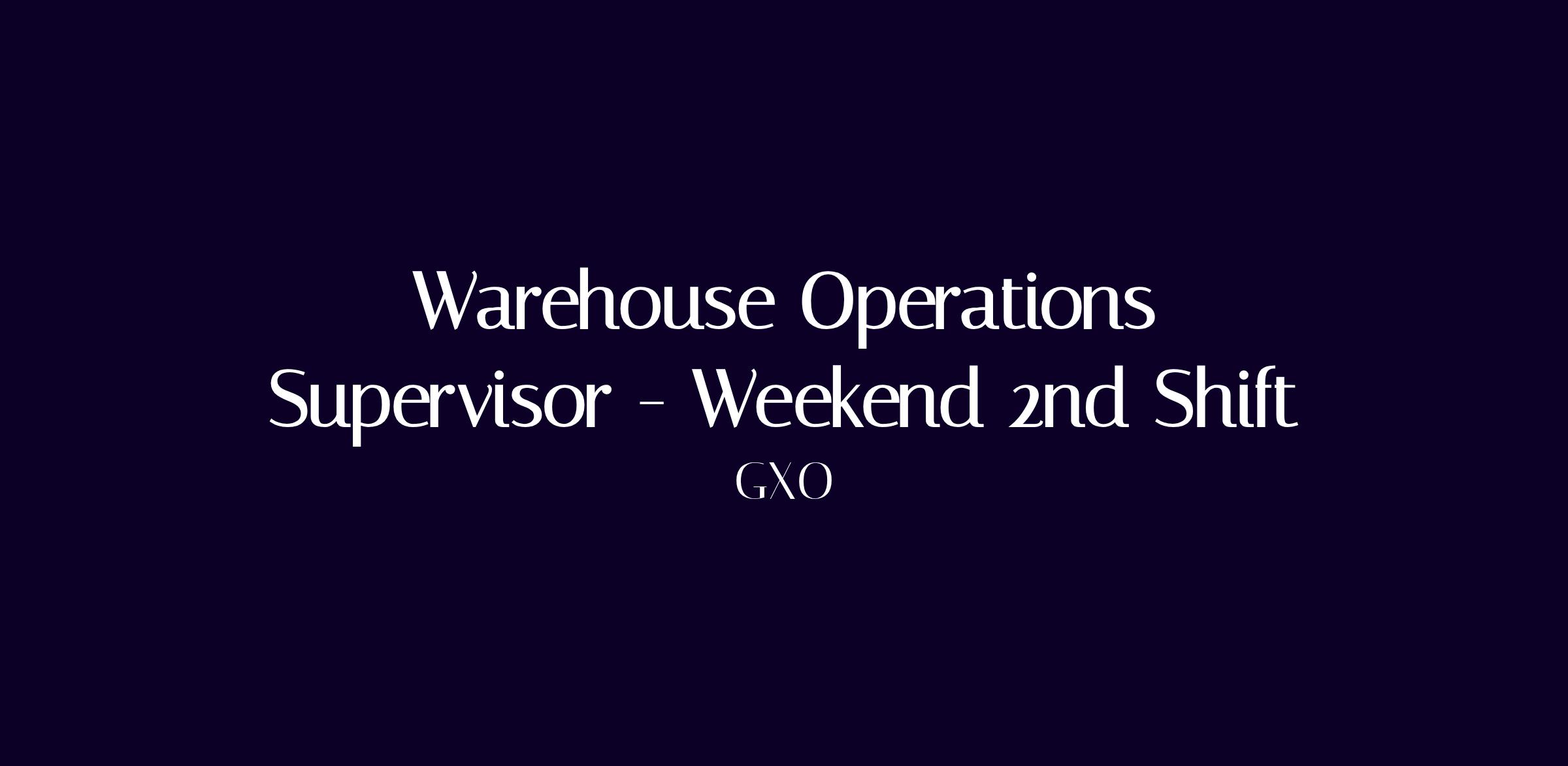 Warehouse Operations Supervisor - Weekend 2nd Shift