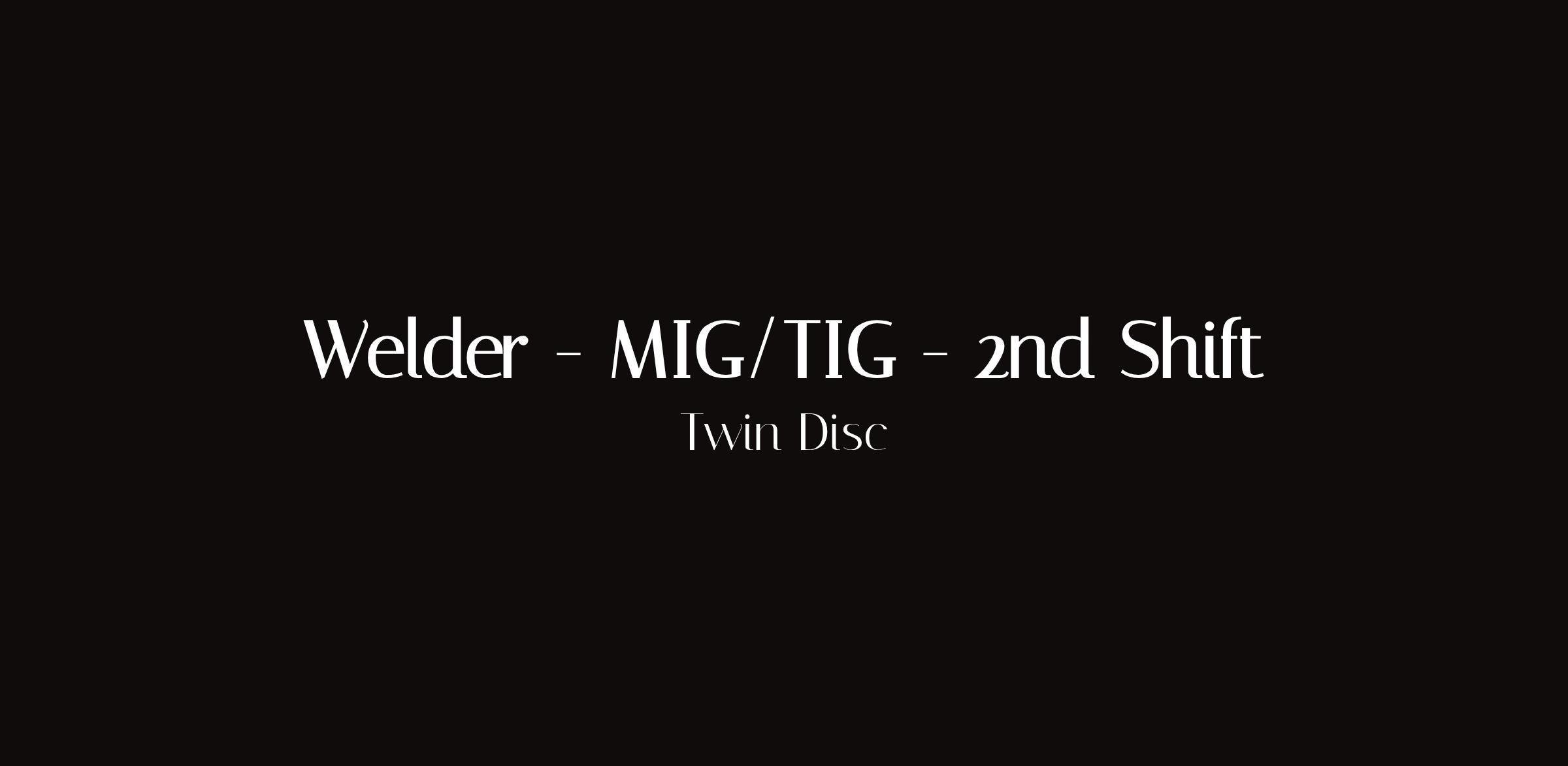 Welder — MIG/TIG — 2nd ShiftLocation: Racine, WIShift: 2nd Shift, 2:00 PM – 10:00 PM, Monday – FridayPay: $26.00 – $30.00/hourTwin Disc is hiring certified MIG/TIG Welders for marine transmission fabrication. Join a historic Racine manufacturer with a reputation for quality and precision.Responsibilities:Weld marine transmission housings and components per blueprintsPerform visual and dimensional weld inspectionsGrind and finish welds to specificationComplete weld logs and traceability documenta